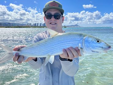 Fishing the flats of Oahu is challenging but very rewarding. We have some of the largest bonefish in the world including numerous IGFA records being caught in Hawai'i. The state has two species of bonefish: the roundjaw, and the sharpjaw which is native to Hawai'i and cannot be found any where else in the world.